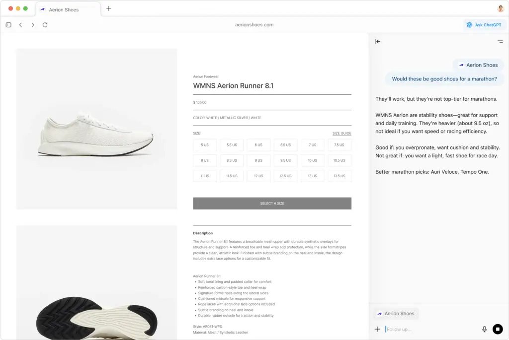 基本コンセプト:「ウェブのあらゆる場所でChatGPTを活用して、即時の回答、よりスマートな提案、タスクのサポートを得られる。すべてプライバシー設定で制御できる」[1]