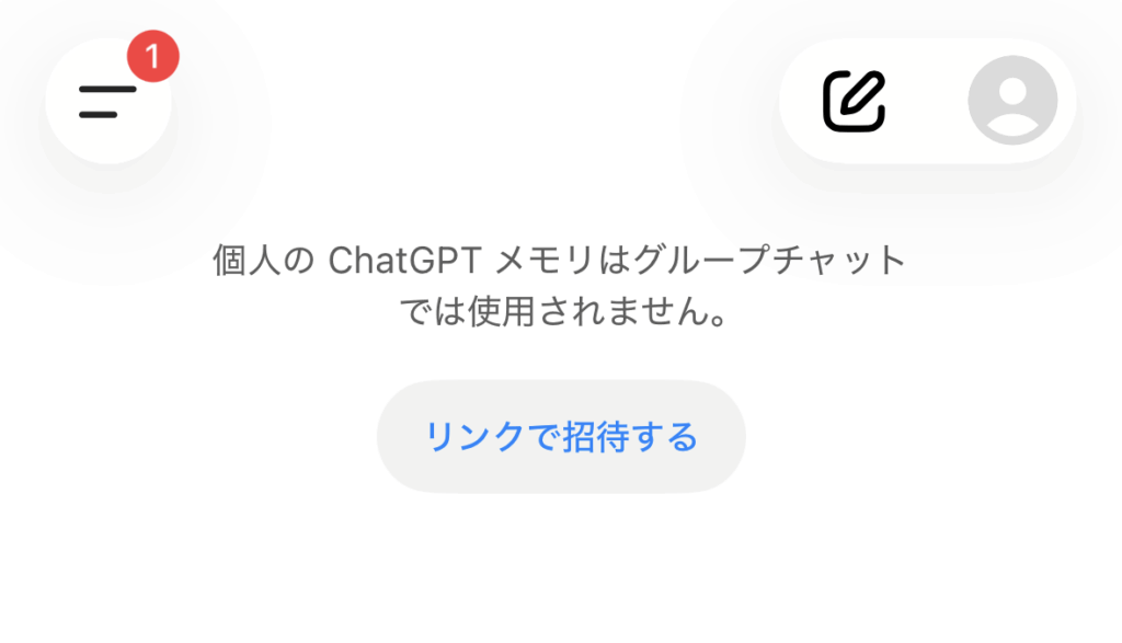 グループチャット機能では、複数人が同じチャットルームに参加できます。使い方はいたってシンプルで、ChatGPTの画面右上にある人物アイコンをクリックし、参加したい人にリンクを共有するだけです。